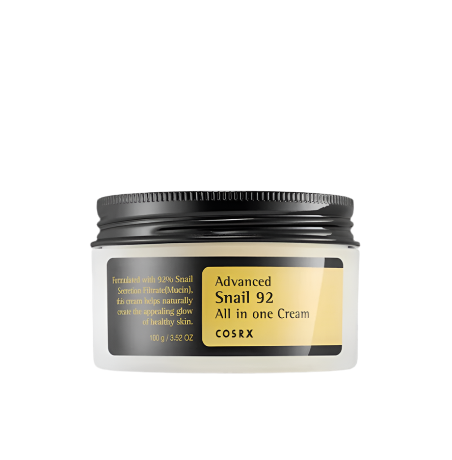• La crème tout-en-un COSRX Advanced Snail 92 contient 92 % de filtrat de bave d'escargot pour une peau fraîche, apaisante, hydratée et lisse.